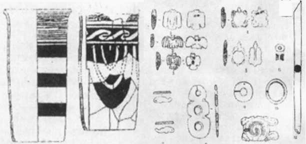Above: Jade items recovered at Hutougou, and the pottery tubs from tomb boundary