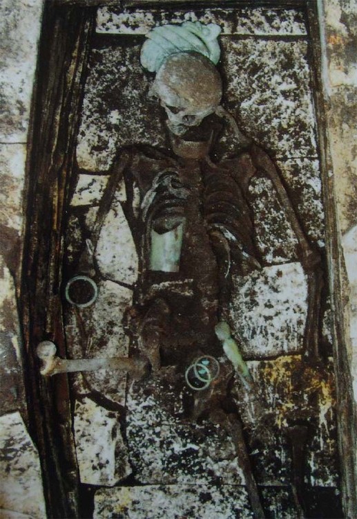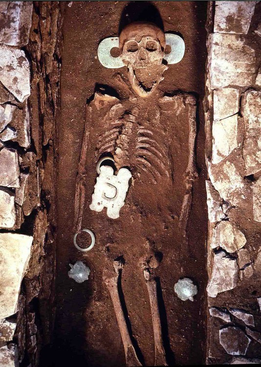 a tomb with several unique jade objects
