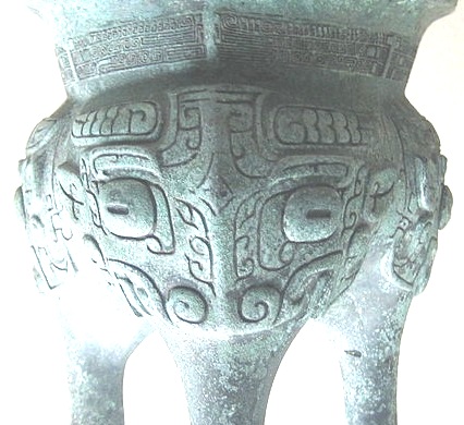 with further development into the Shang taolie 饕餮 face the appears widely, with variations, in numerous kinds of Shang and Zhou bronze
